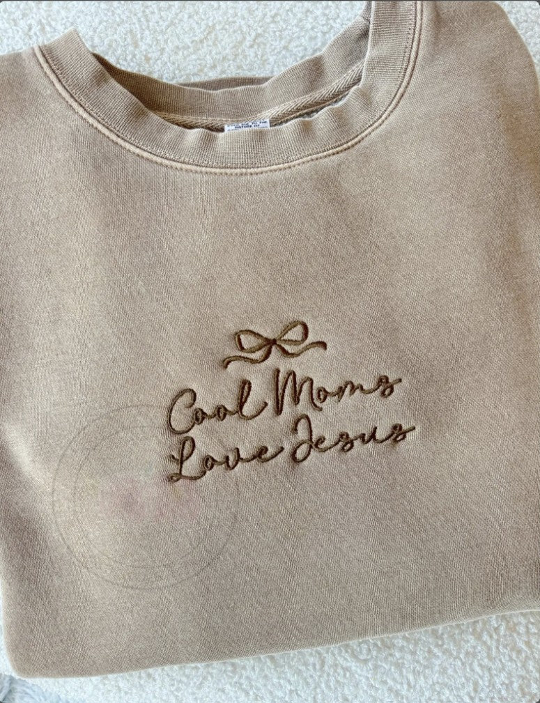 Cool Moms Love Jesus Embroidered Tshirt or Crewneck Sweatshirt