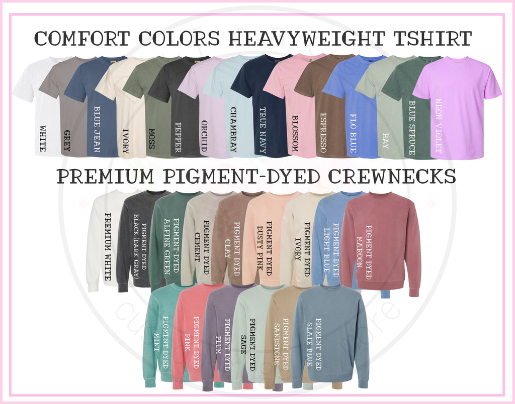 1.) T-shirt/Sweatshirt color (options shown in photos)